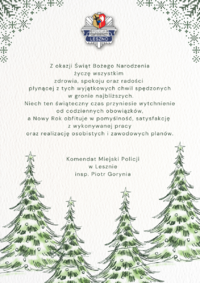 ŻYCZENIA ŚWIĄTECZNE KOMENDANTA MIEJSKIEGO POLICJI W LESZNIE Data publikacji: 23.12.2025