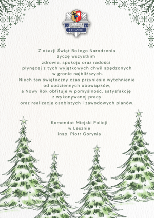 - ŻYCZENIA ŚWIĄTECZNE KOMENDANTA MIEJSKIEGO POLICJI W LESZNIE Dodano: 23.12.2025