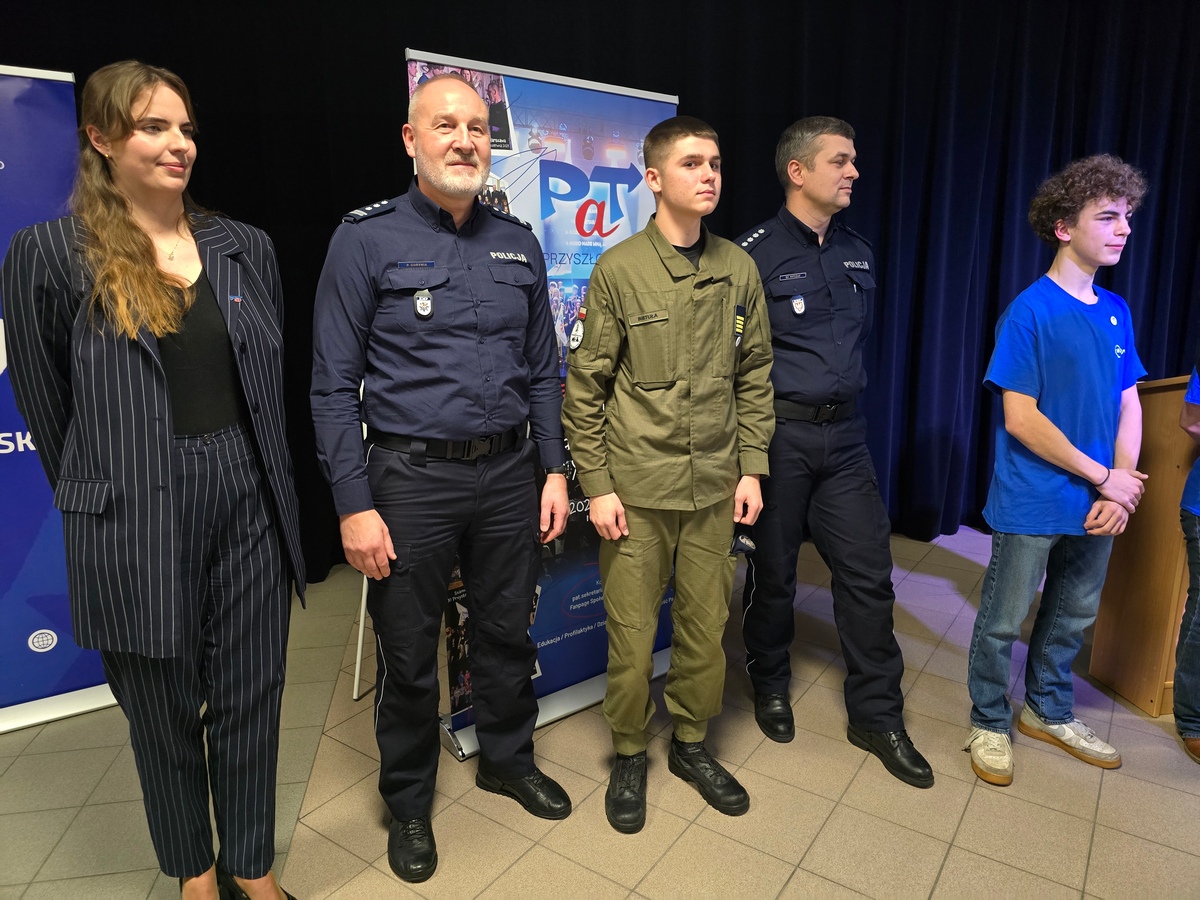 Podczas konferencji dyrektor szkoły oraz komendant leszczyńskiej Policji wręczyli Michałowi Pileckiemu – uczniowi II Liceum Ogólnokształcącemu w Lesznie znaczek kapitana PaTportu.